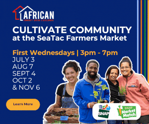 Attendees will enjoy a vibrant, family-friendly, culturally diverse market atmosphere as they kick off the SeaTac Farmers Market’s inaugural season dedicated to health, community, and empowerment.
