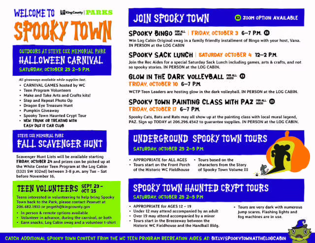 • The Spooky Town Underground Tour through the basement of the Historic White Center Field House (Friendly for all ages)