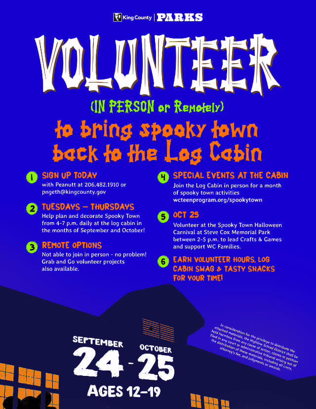 Teens interested in volunteering can reach out to Peanutt at pngeth@kingcounty.gov or call 206.482.1910.