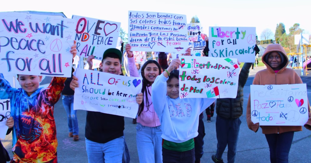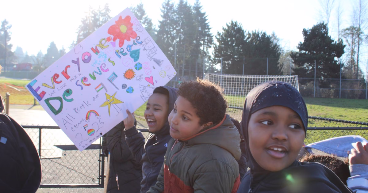 Students and staff at White Center Heights Elementary held a Peace and Belonging March on Friday, Jan. 16 to commemorate the birthday of Dr. Martin Luther King Jr., according to Highline Public Schools.