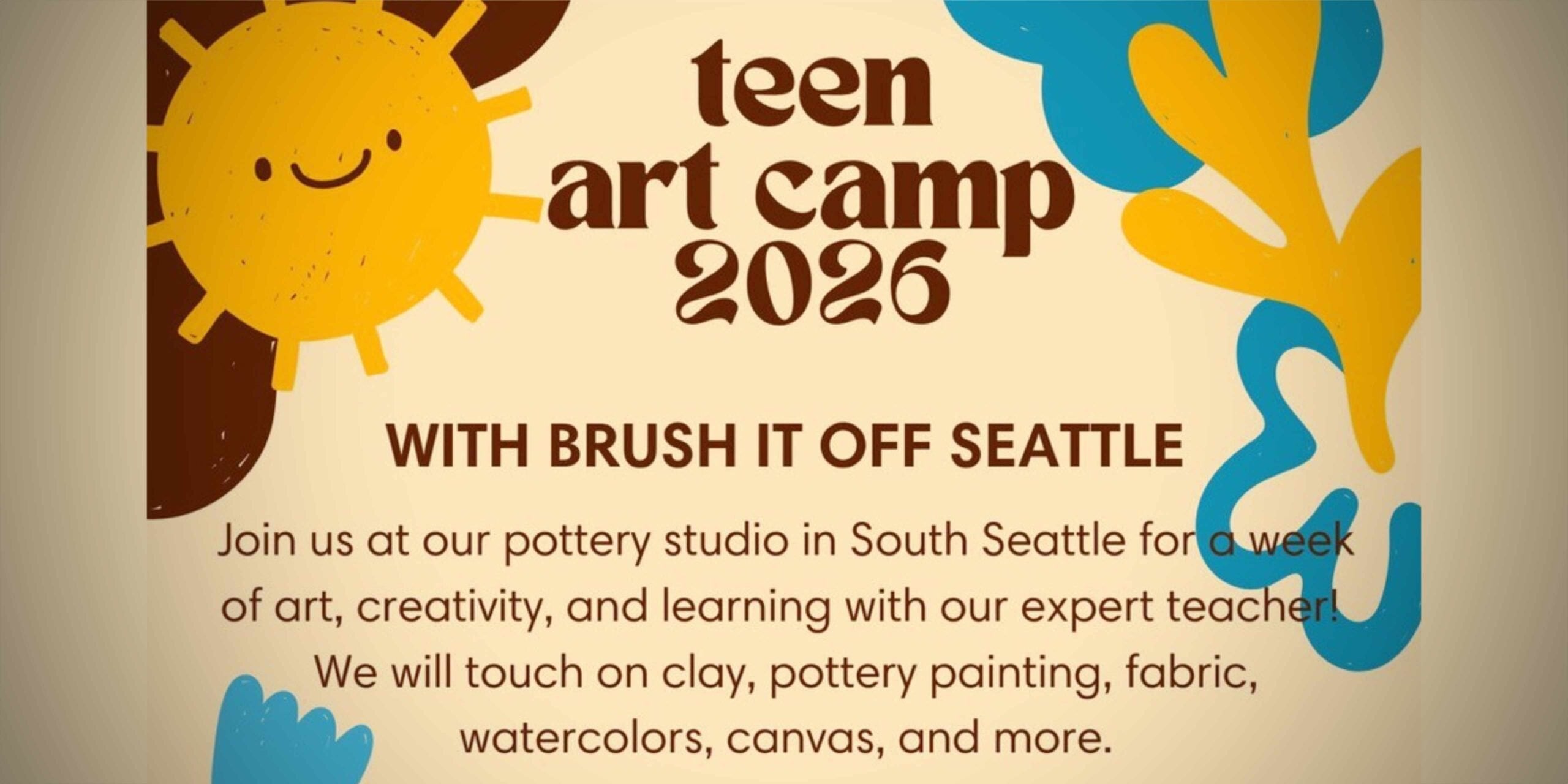 Brush It Off Seattle is inviting teens to sign up for a weeklong Teen Art Camp in July that will offer hands on instruction across multiple art mediums.