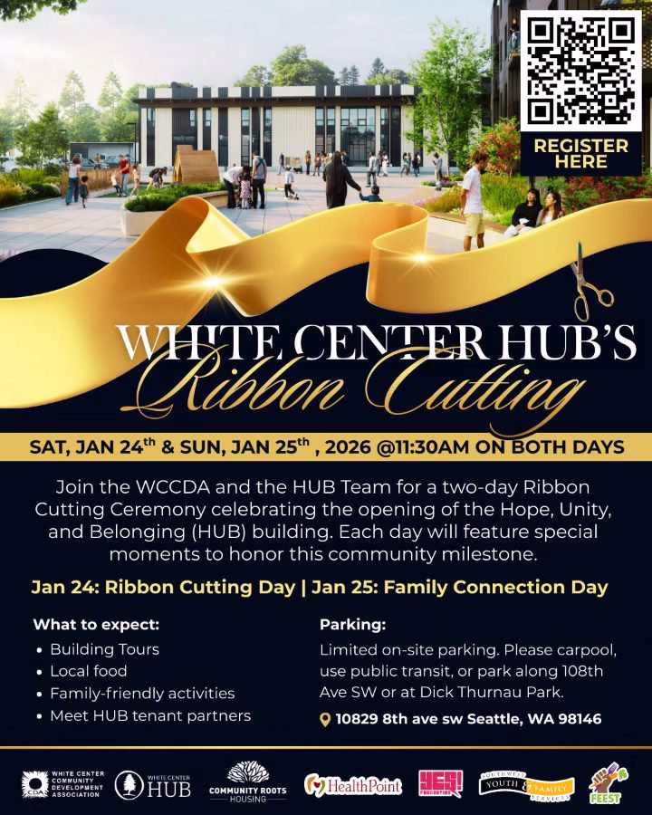 The White Center Community Development Association (WCCDA) will celebrate the opening of its new Hope, Unity, and Belonging building, known as the HUB, with a two-day ribbon cutting celebration on Saturday, Jan. 24, and Sunday, Jan. 25, according to the organization.